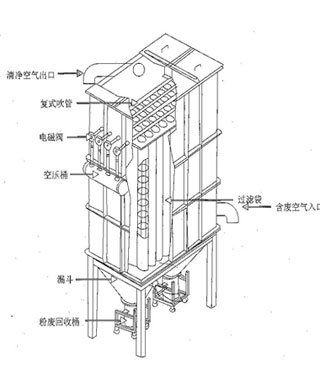 概述:“脉冲袋式集尘器”是一种理想的高效低耗性集尘及原材料粉尘回收设备,设备本体由集气箱、过滤袋、净汽箱、集灰斗、清灰装置及电控脉冲阀系统等部分组成;该设备利用高压喷吹原理,含尘空气由集尘设备底部吸送至滤袋室内,粉尘附著于滤袋表面,过滤后之清净空气通过滤袋设备顶部排出,滤袋表面附著之粉尘以喷气逆洗方式清洗滤袋,震落后收集于压板式集尘桶内清除。清洗滤袋装置设置于滤袋顶部,运作时以压缩空气(7kg/cm2)瞬间喷入并导入5至7倍的二次空气,使滤袋产生扩张的震动原理,利用此扩张的振动原理及空气逆洗作达到清洗滤袋的效果。能使滤袋提高透气性降耗节省动力能源。清洗滤袋时因每组滤袋清洗时间仅约0.1秒,对过滤面积影响几乎没有,且每一组滤袋循环清洗时间间隔约三分钟,滤袋整体压降保持一定,处理风量压力变动小,设备整体能保持稳定状态运转。除尘器工作时气流引射量大,粉尘过滤,与清灰桶可持续并自动运行。集灰箱可根据需要配置底轮滑动手推式集尘箱,该除尘设备是目前所有各类除尘器中性能比较高的除尘装置设备之一。1, 特点:粉尘废气的处理可允许入口粉尘浓度大,回收净化效率可达百分之99以上,2, 清灰槽桶采用1C在线脉冲仪控制进行,全自动清灰、卸料、操作免停机,清灰彻底、运动稳定等,省时省力;3,滤袋:根据粉尘性质可选用耐温,耐酸喊,防静电,防水防油等性能的防尘在针刺滤袋。可直接处理含尘浓度高达1000g/Nm3的含尘气体,经处理后气体的排放浓度低于50mg/Nm3,也可根据用户的特殊要求,满足更加严格的排放标准。针对各种不同类型的烟气,可采用不同的滤料来加入以处理,使之达到排放要求,适应性强。采用先进的脉冲阀,性能可靠。脉冲阀使用寿命100万次。采用先进的PLC可编辑控制器,定时或定阻自动喷吹清灰,实行自动化运动,耗气量小,清灰彻底,性能稳定。